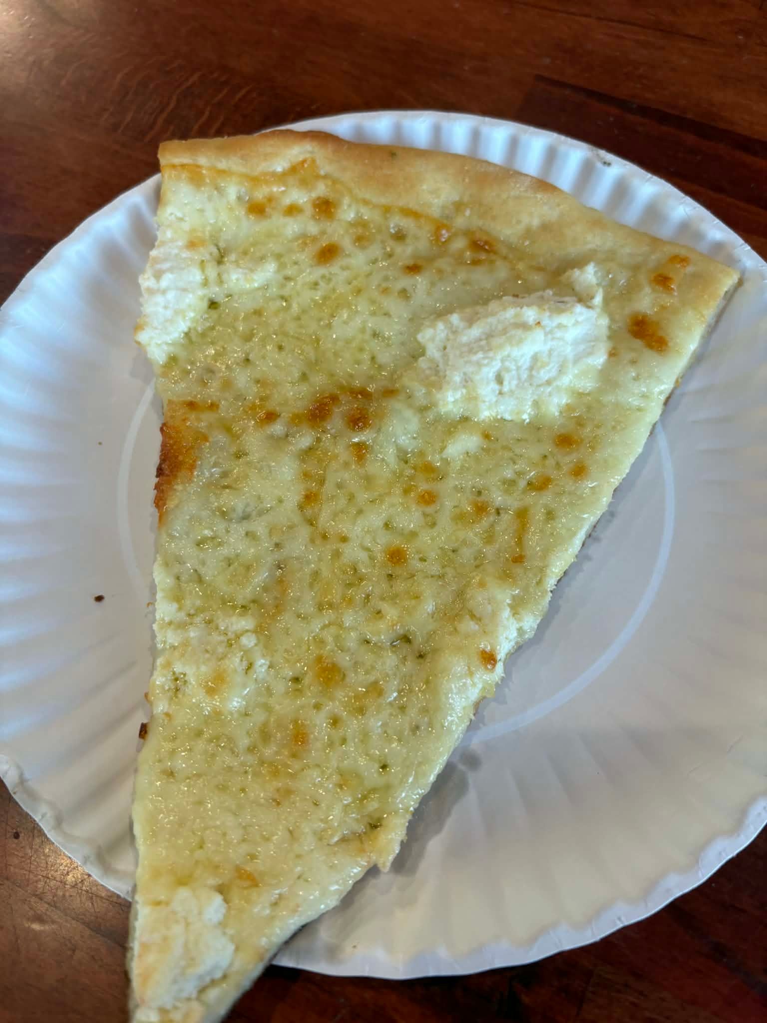 Unfortunately, the pizza just didn’t do it for me. I went in expecting at least a solid New York–style slice, but it was pretty bland overall with not much flavor coming through. Nothing stood out with the crust, sauce, or cheese, and it just missed the mark from the first bite. I did like the white pizza better than the traditional.