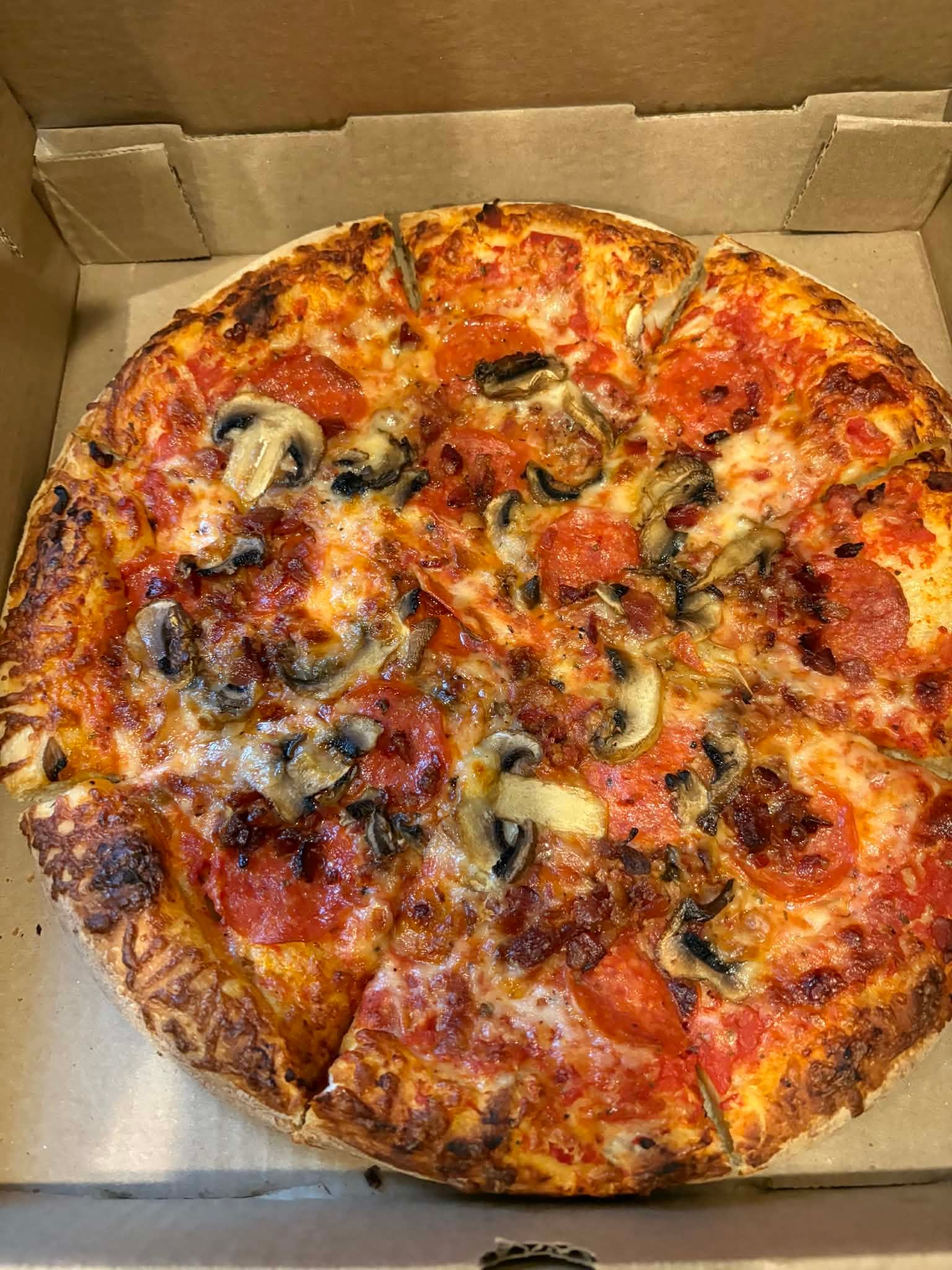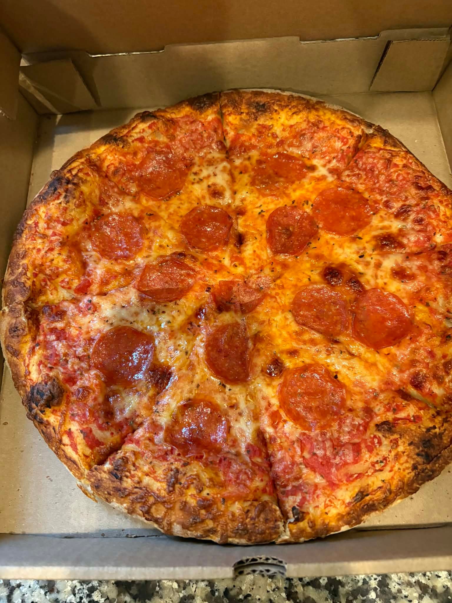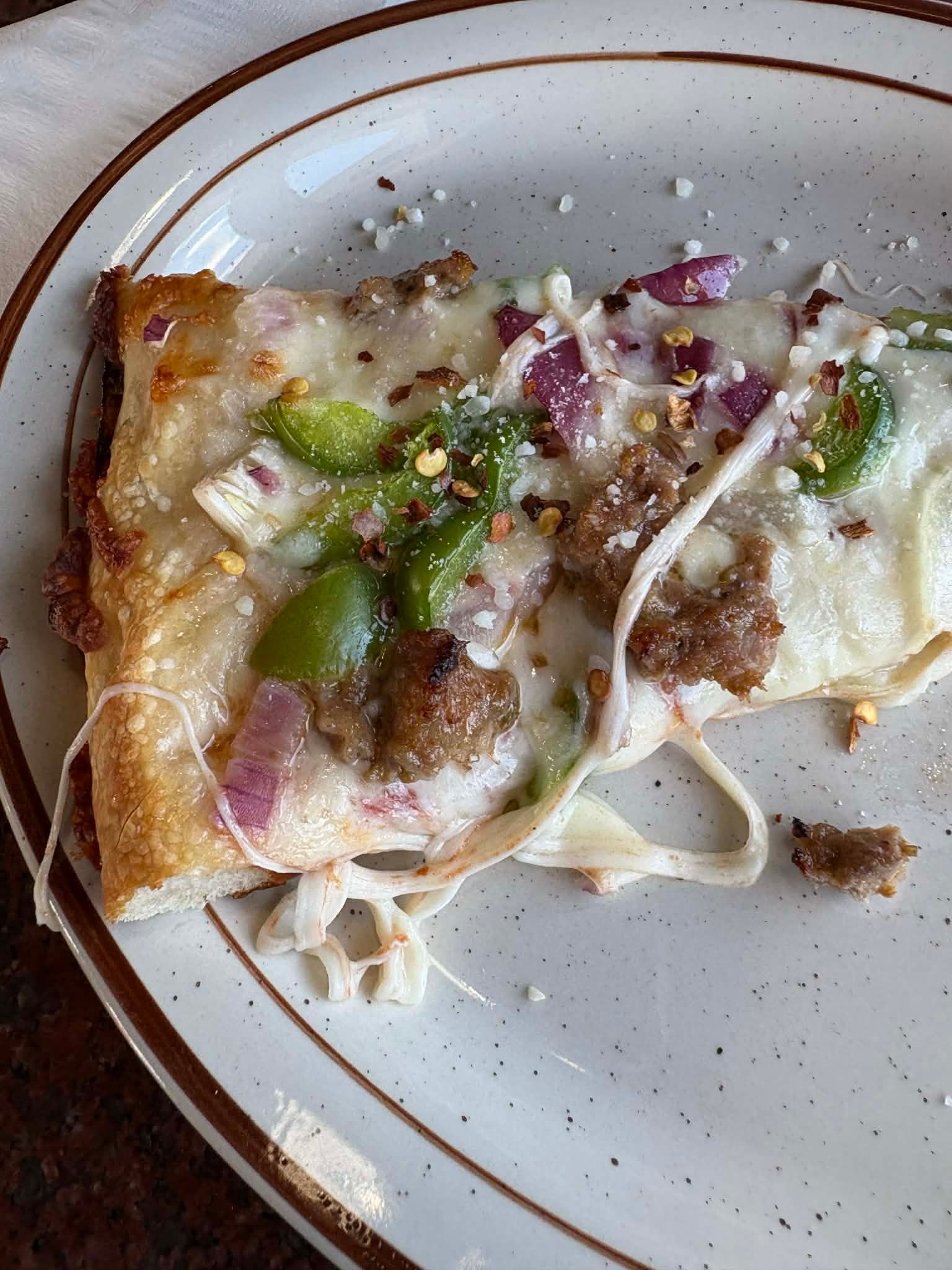 Christo’s delivers a true pan-style pizza with a golden, semi-crispy crust that has real flavor thanks to the pan bake. The cheese is plentiful and melty, and the toppings are fresh and well distributed across the entire pie. Coming from New England—where Greek-owned pizzerias dominate the pan-pizza game—this one absolutely hits the mark. The sauce could use a bit more punch, but it doesn’t take away from how solid and satisfying the overall pizza is.