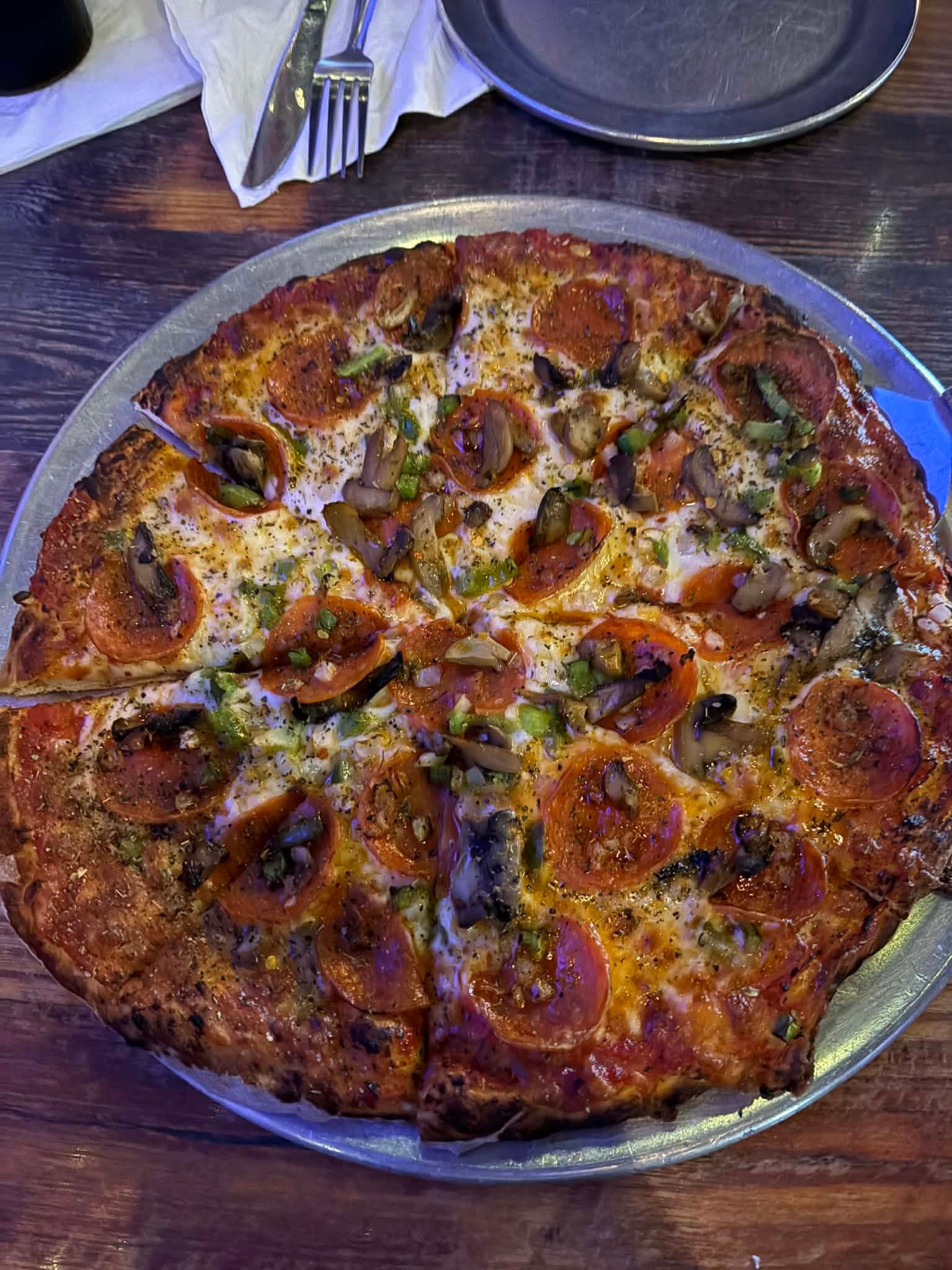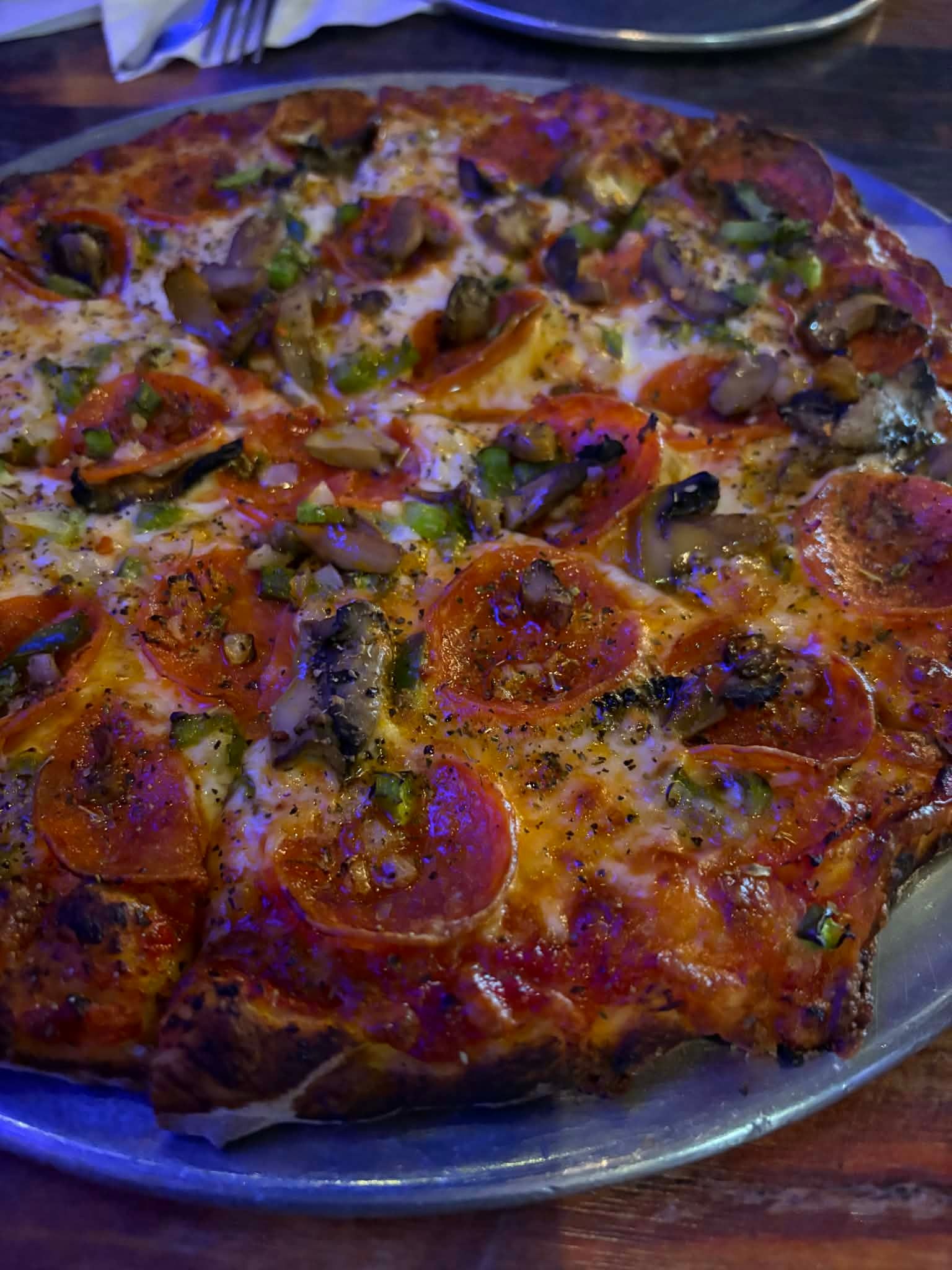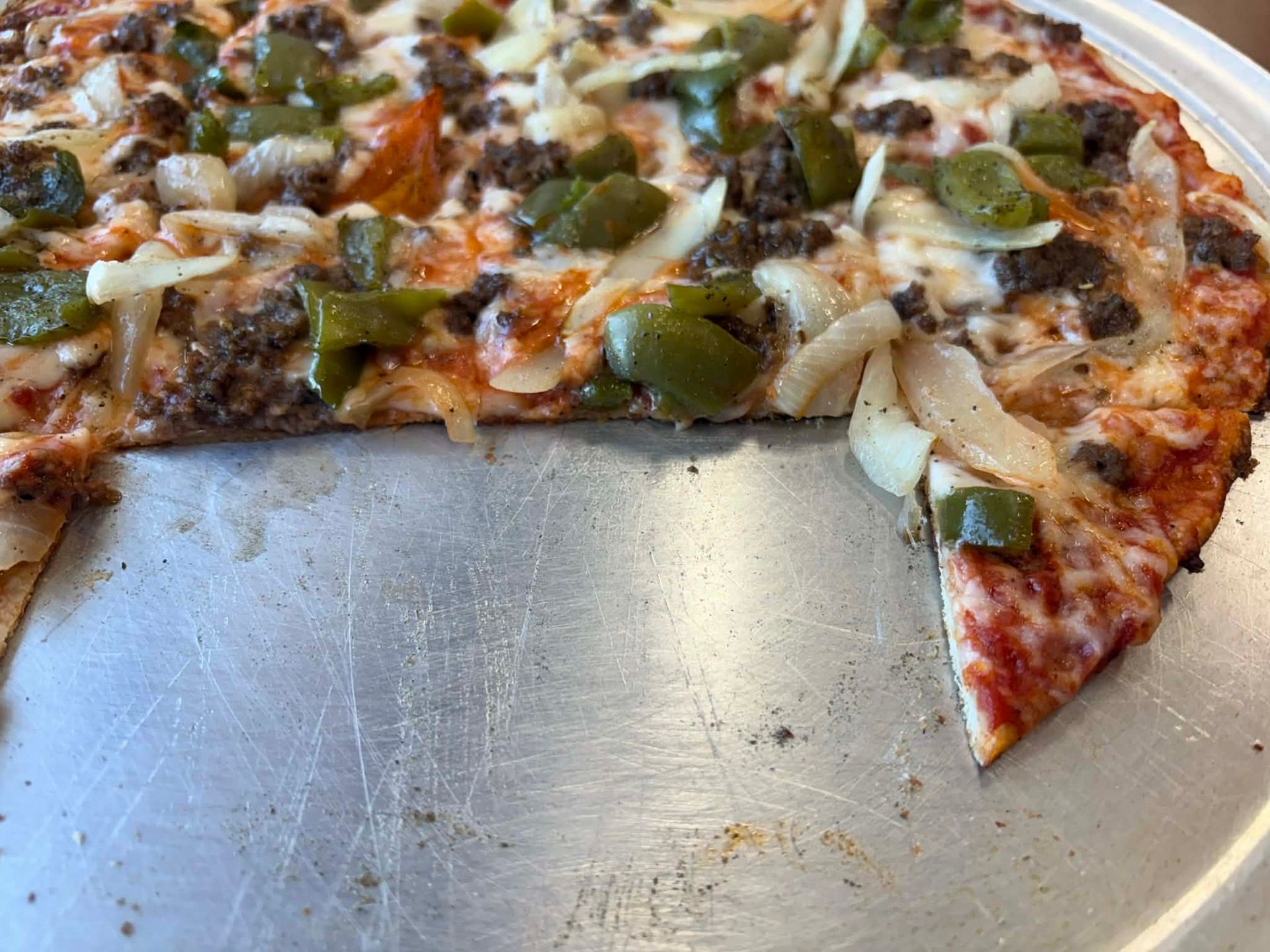 Christo’s delivers a true pan-style pizza with a golden, semi-crispy crust that has real flavor thanks to the pan bake. The cheese is plentiful and melty, and the toppings are fresh and well distributed across the entire pie. Coming from New England—where Greek-owned pizzerias dominate the pan-pizza game—this one absolutely hits the mark. The sauce could use a bit more punch, but it doesn’t take away from how solid and satisfying the overall pizza is.
