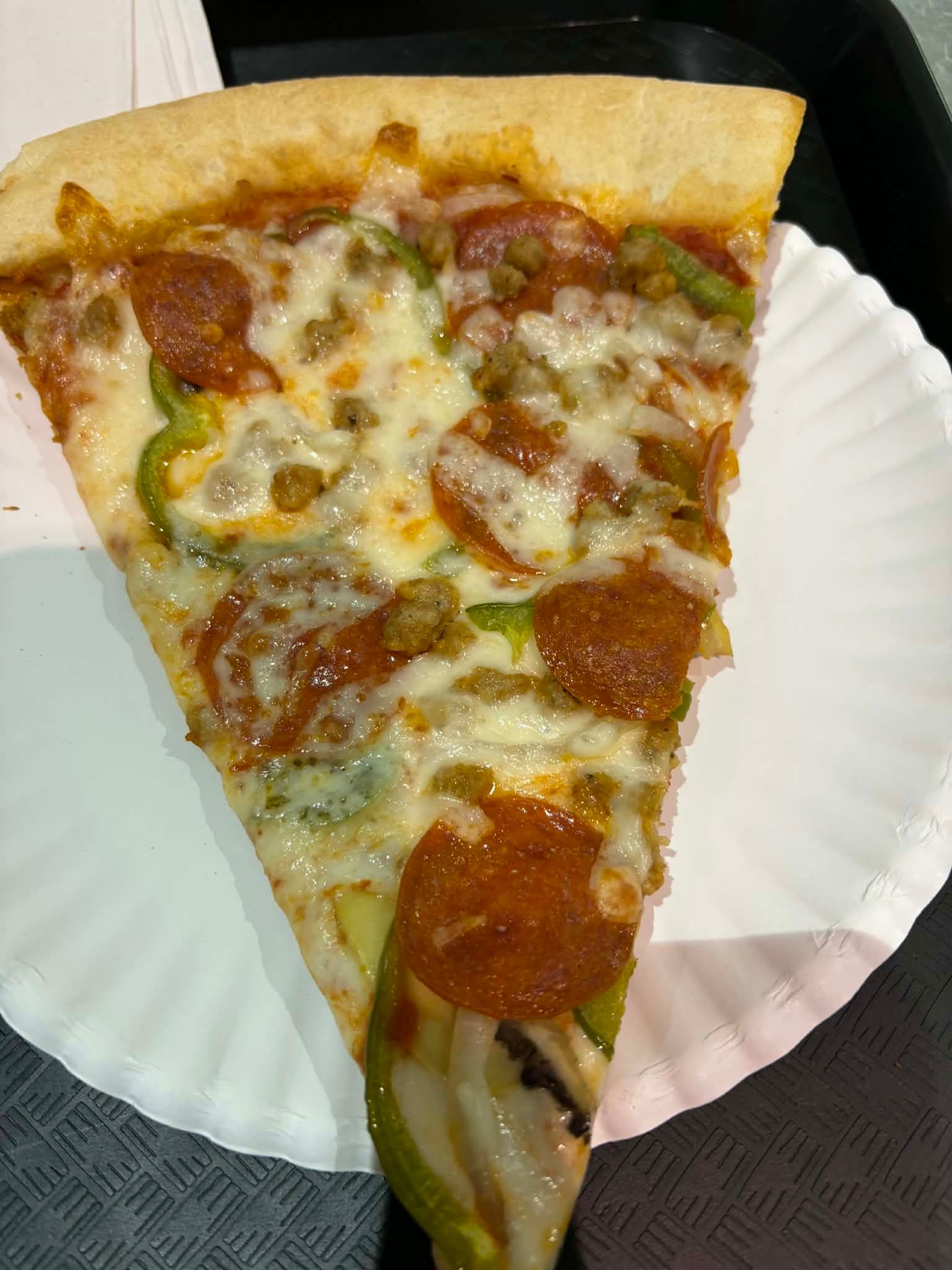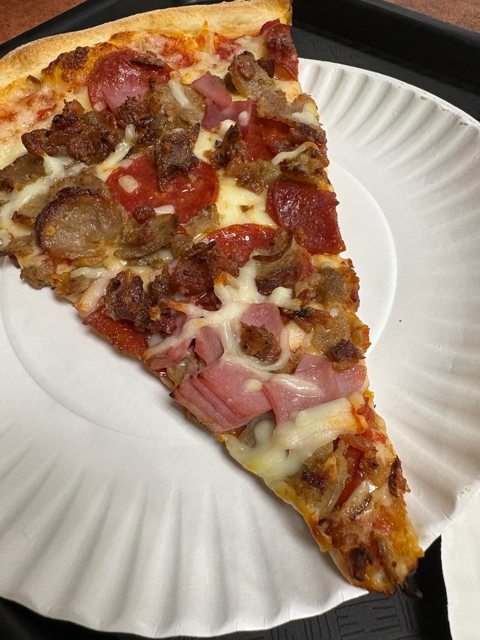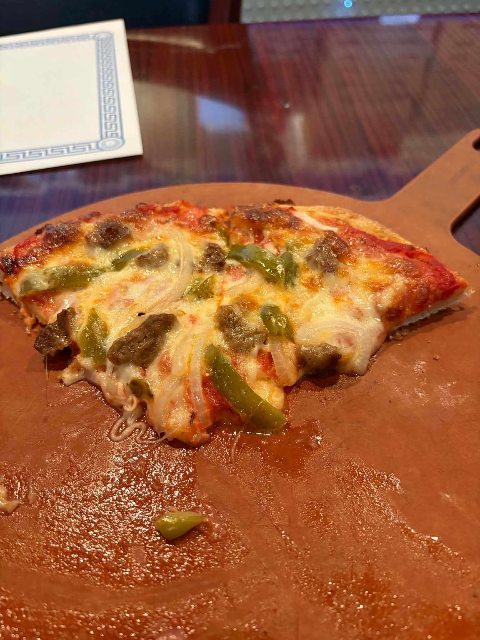 Athens Pizza serves Greek-style pizza, and coming from New England — where Greek-owned pizza shops are everywhere — this style is very familiar to me. Greek pizza is typically pan-style with a thicker, airy crust and generous toppings. This one lands somewhere between pan and thin, and while I personally wish it leaned a little more toward a full pan pizza, the crust still had good flavor and held everything together well. The sauce tasted great and the cheese was solid, making for a very satisfying overall bite.