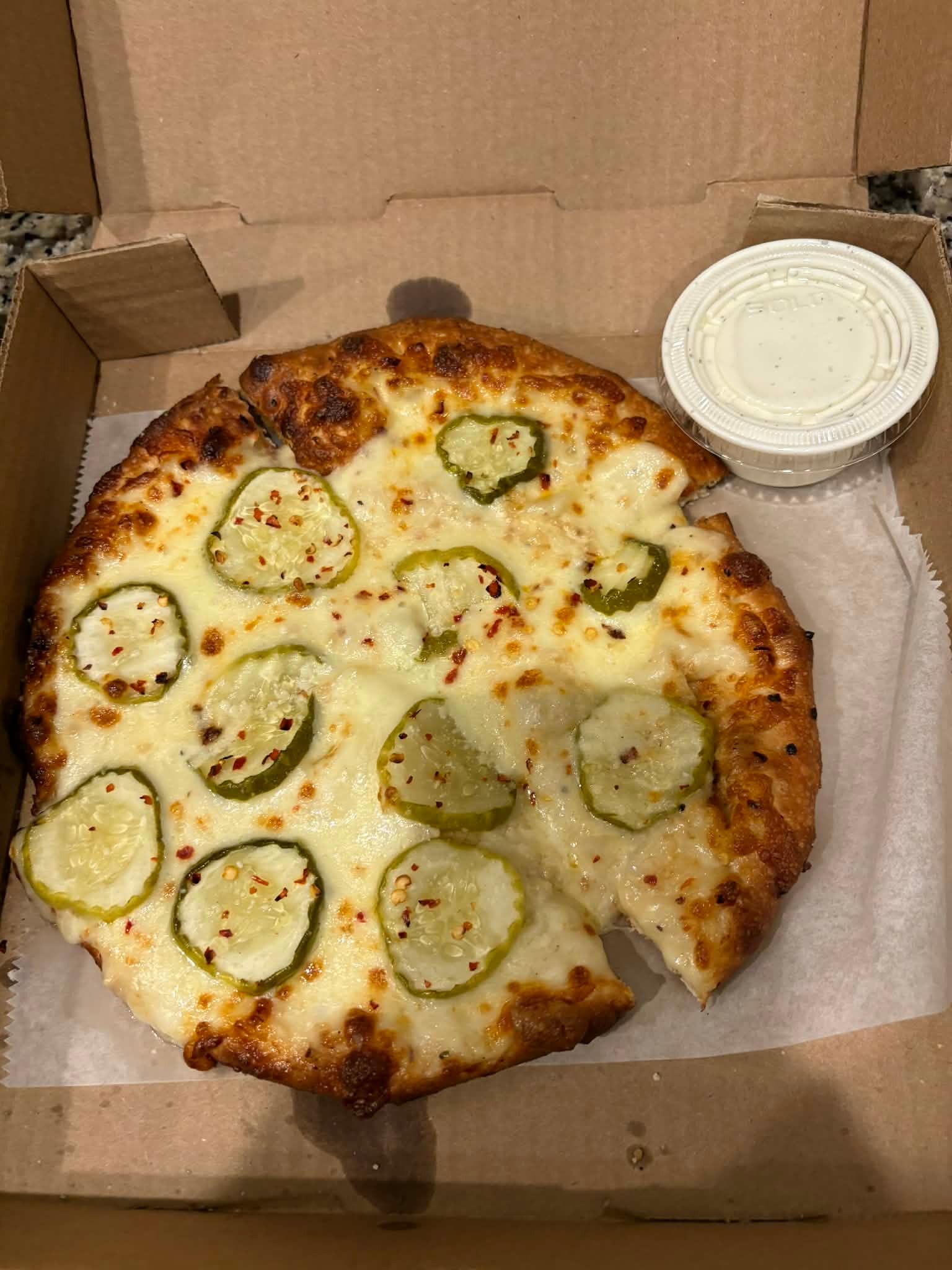 AJ’s is one of those spots where everything just works. The crust has great structure and flavor, the sauce is balanced and tasty, and the toppings are generous without going overboard. They’ve got a solid lineup of specialty pizzas, but the one everyone talks about for good reason is the pickle pizza — and yes, it’s actually really good. Nothing here feels gimmicky; it’s just well-done pizza across the board.