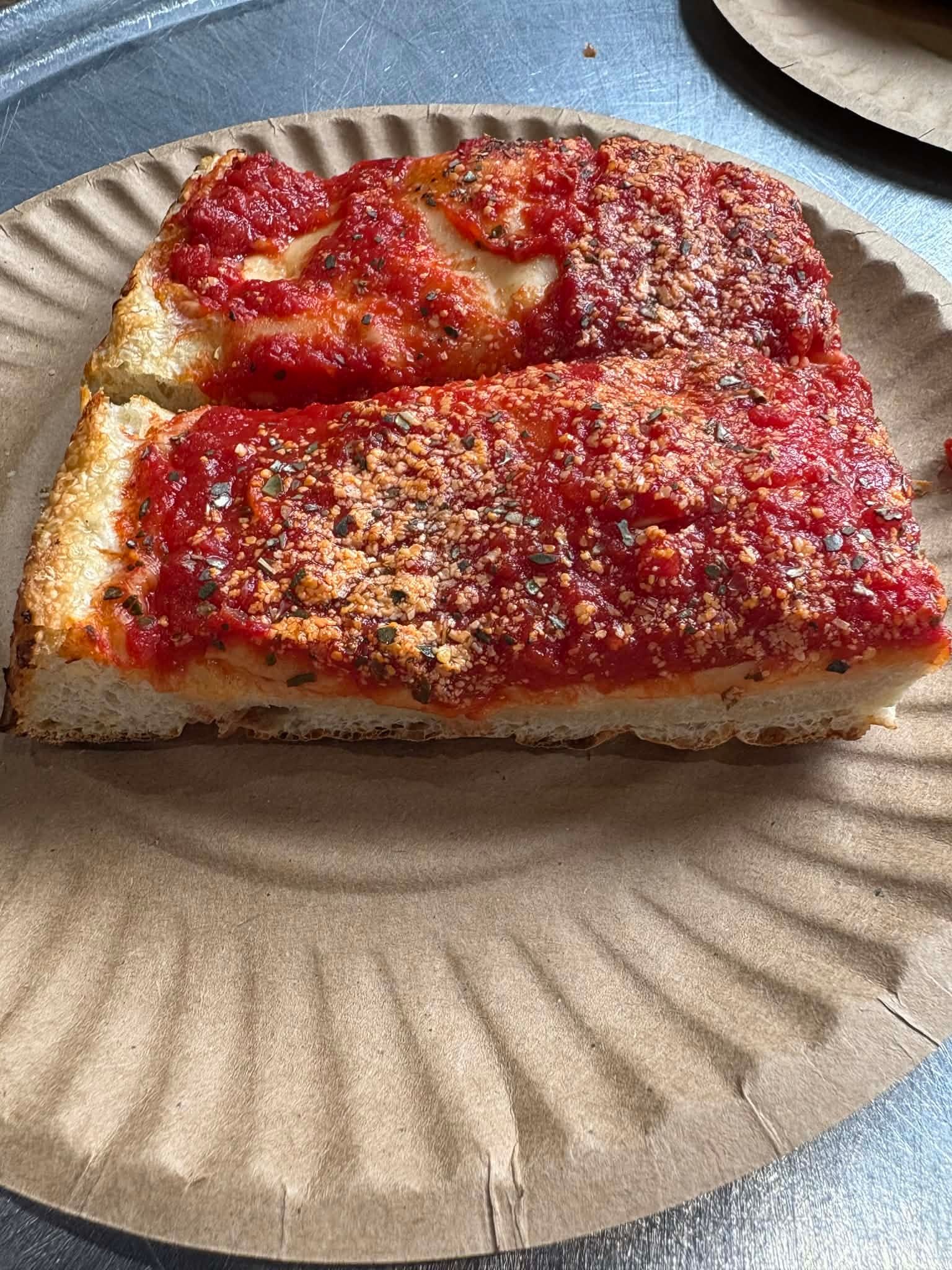 This one just didn’t land for me. I tried both a pepperoni slice and a Sicilian, and neither did much of anything. The Sicilian was noticeably dry, and the regular slice was small and pretty lifeless in terms of flavor. You can kinda tell from the pictures… there wasn’t much there to get excited about. I know some people swear by this place, so maybe I caught them on an off day, but based on this visit, the pizza itself was a miss.