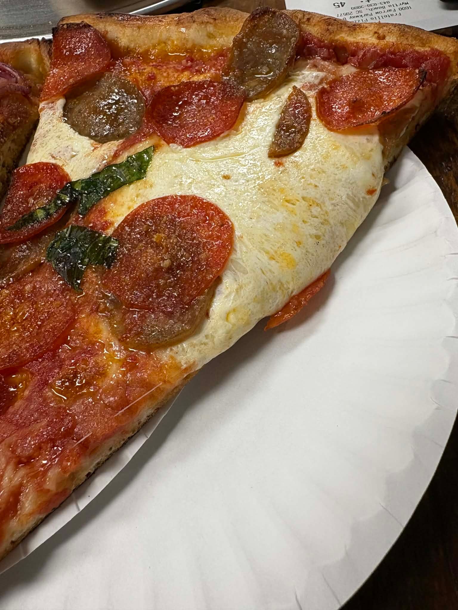 That said, I’ve eaten plenty of legit New York pizza in New York City, including well-known spots on Arthur Ave in the Bronx, along with Chicago deep dish and tavern-style thin in Chicago, plus pizza all over the country. And here’s where I push back a little: people love to say there’s “no real New York–style pizza in Myrtle Beach,” but that argument misses the point. New York–style is a style of pizza, not something that only exists within city limits.